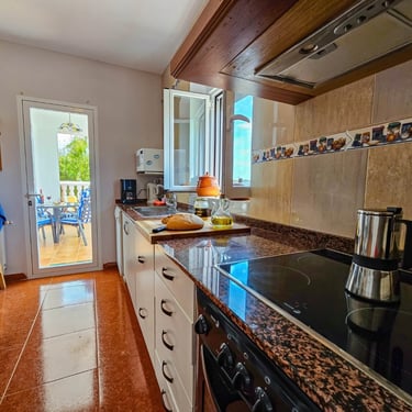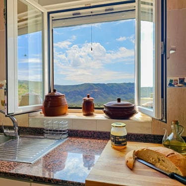 En Casa Lourdes dispones de todas las comodidades en la cocina. Lavavajillas, horno, vitrocerámica, cafetera y todo lo que necesites, incluso una vistas espectaculares a la Sierra del Segura.