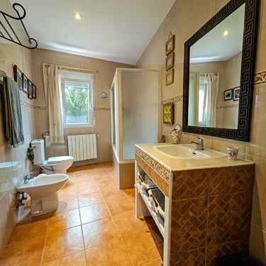 En Casa Lourdes dispone de 2 cuartos de baño completos, 1 con plato de ducha y otro con bañera, porque tu cuidado personal es muy importante para nosotros.